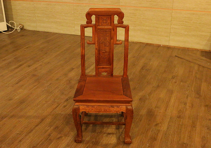 在自己實際的日常生活當中,反而凳子用的較為普遍,一是感覺使用起來比較方便隨意,二是不用像椅子那么占用地方空間。印象當中餐椅用到較多的場所,多是些高檔的餐館酒店禮堂,那一張張大大寬敞的圓形餐桌再環繞搭配上一面面靚麗白凈的椅靠背板配之的餐椅,多數帶有些歐式風格家具的韻味,頗顯莊園親切之感,有些使人困頓閑暇陶醉恬適之意。而在那些正式莊嚴的場合,譬如舉辦婚禮、生辰大壽時亦或是為了迎接遠方來賓,餐椅的選擇和搭配就更顯得重要和講究了,而今天,同樣筆者要給大家介紹的一款餐椅就是,優質緬甸花梨(學名:大果紫檀)制作的松鶴延年餐椅,一起來看看吧: