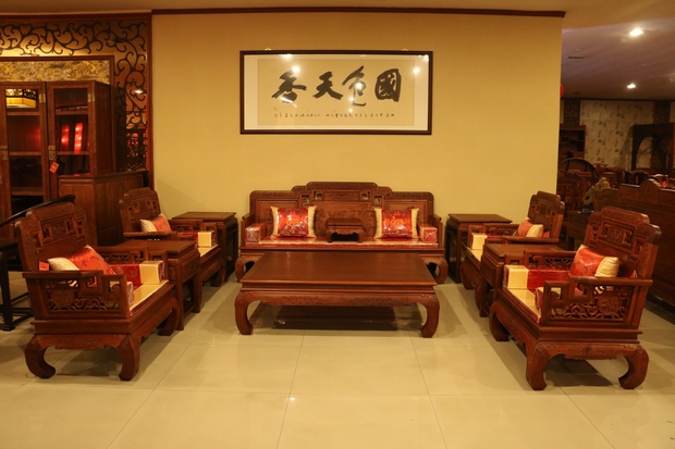 今天,介紹一款我們福林堂紅木的熱銷產品----國色天香沙發。該款沙發采用了優質的緬甸花梨木作為用材,雕刻精美、寓意吉祥整套沙發組合有11件套和7件套的組合。11件套的家庭占地面積為3.3M*3.6M、7件套的家庭占地面積為2M*3.6M;一般情況下大多數家庭的客廳橫向的3.6M都是可以滿足沙發的擺放的紅木家具,那么縱向有4.5M以上的客廳可以選擇11件套的,4.2M以下的就只能考慮7件套的沙發了。
