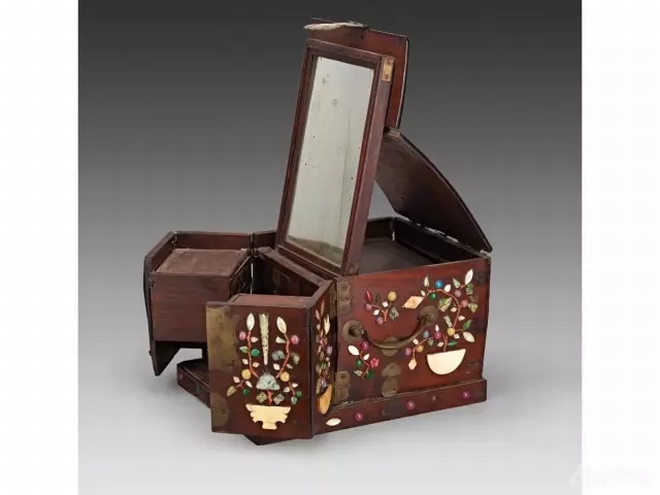 梳妝打扮是上至太后妃嬪,下至小家碧玉都喜愛的一種本能。而作為皇室,太后、妃嬪們所用的器物又更高端的多。北齊的胡太后,讓沙門靈昭,制造了七寶鏡臺,三十六個門戶各有一婦人,手中各自拿著鎖匙,只要輕碰其中一個門戶,這三十六戶一時全都自行關閉;若抽出其中一關的鎖匙,那么其余諸門,盡皆開啟,婦人都出現戶前站立。唐朝的馬登封也曾為皇后制妝臺,進退、開合全自動,都不須人力,巾櫛(梳篦的總稱)、香粉,依次遞送、循序進獻。看見的人,都認為是鬼斧神工