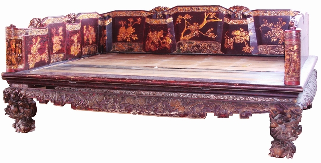 ,但保存非常完整,觀之金碧輝煌,在明清床榻中實屬罕見,價值極高。